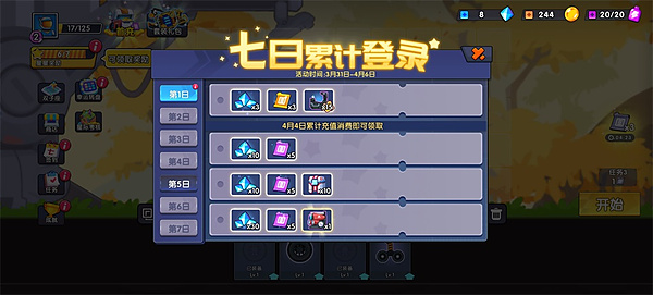 4、每天上线打个卡,签到天数够了也送水晶。