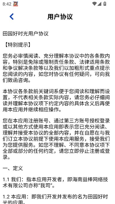 1、在本站点击下载安装并打开《田园好时光》游戏官方最新版本,然后,我们需要同意相应的协议。
