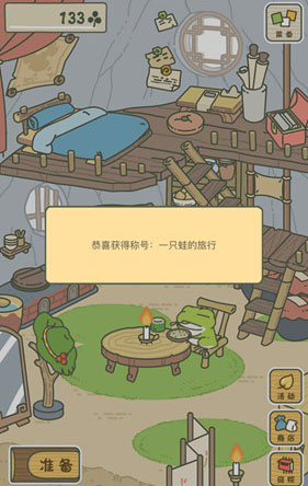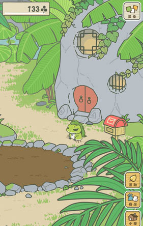 刚进游戏,界面就是个童话风的小院子,主角就是那只一天到晚想出门的青蛙。
