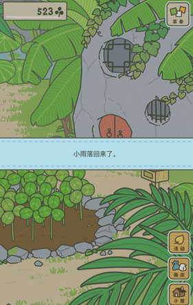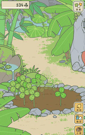 1、吃的和道具,要么是蛙儿子旅行路上捡回来的,要么就得靠你在院子里种的三叶草去商店换。
