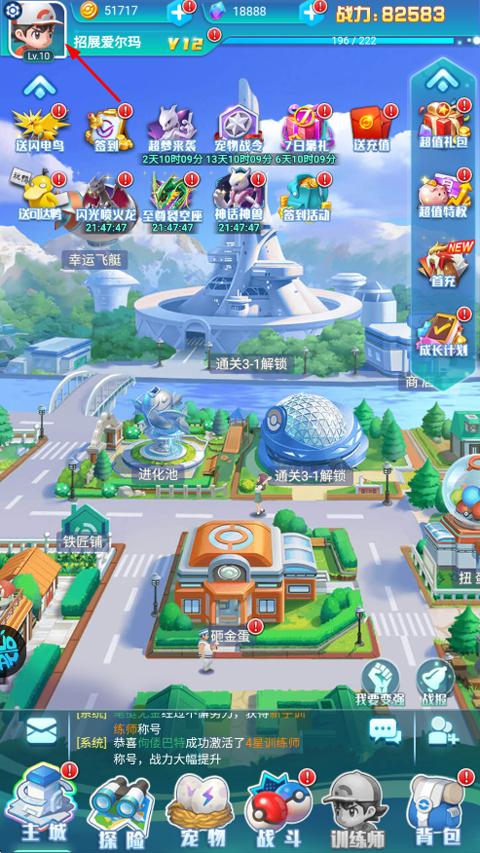 3、开局福利给得挺猛,上线直接送满V,还有万元充值卡之类的噱头。送的那个闪光喷火龙前期确实好用,帮你平推不少图。