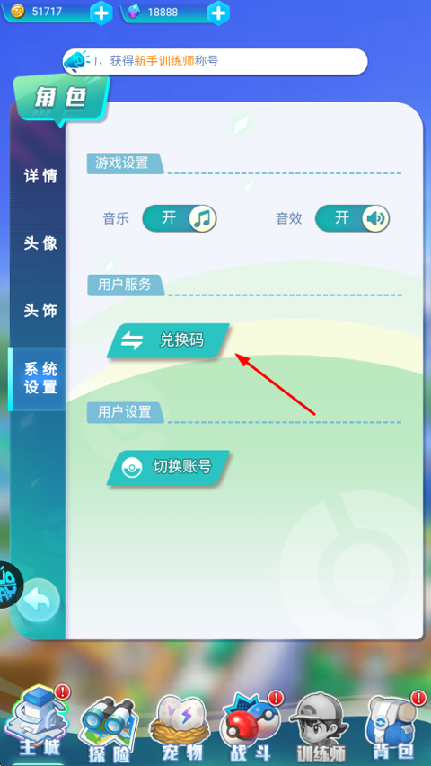 3、在设置菜单里扫一眼,就能看到一个很直白的“兑换码”选项,就是它了。