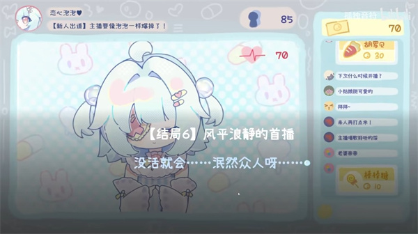 游戏里的分支剧情做得还行,你选啥就走向啥样的故事线,主播的命运就捏你手里了。一步走错,主播直接“砰”一下像泡泡一样炸了,视觉效果挺带感,让你知道什么叫一步错步步错。这种即时反馈的压力,玩起来还真有点上头。