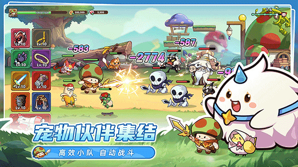 3、不用一直手动操作,小蘑菇会自动打怪、刷资源、升级拿奖励,就算离线也不会停止成长;