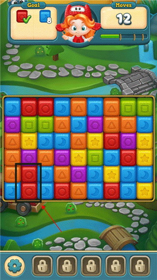 3、核心玩法就是点掉两个或以上同色的方块,把关卡目标里的玩具给凑齐。不过得悠着点,步数是有限的。