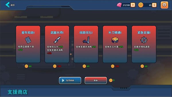 6.老实说,这UI稍微有点复古,但功能确实没毛病。你可以花钱买点支援BUFF,这些玩意儿在这一整局里都管用,缺啥补啥。