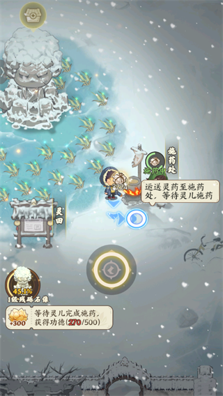 这游戏的修仙路子有点不一样,不是让你傻坐着闭关。你的道行是靠做好事攒出来的。比如在道馆的田里种点驱寒的草药,做成药汤去救助那些冻坏的老百姓。每一次救人,都是在积攒功德。或者接点香客的单子,帮人看看病、驱驱邪,慢慢把道观的名声做起来。你道观里那尊破雕像,会随着你做的好事越来越多而恢复光彩,你的修为也跟着涨。从小范围救灾到最后庇护一座城,挺有成就感的。