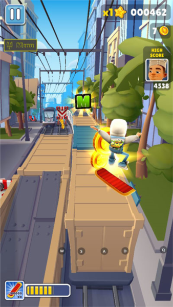 1、游戏性:这游戏的游戏性没得说,非常顶。你得在高速移动中快速反应,躲开警察和各种障碍物,同时还要在轨道上捡金币。难度是慢慢提升的,既能让你保持紧张和挑战,又不会一下子劝退,耐玩性很高。