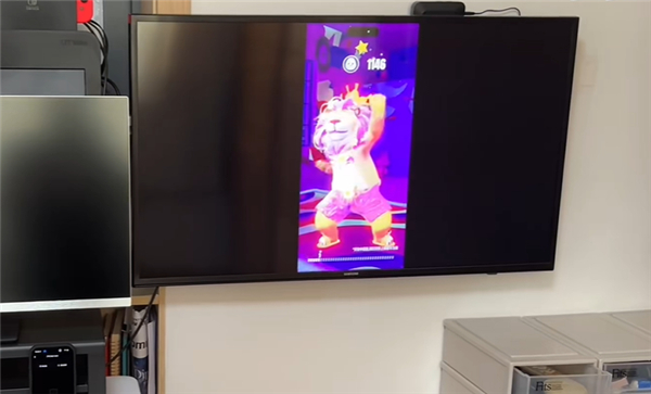 4、一般都是直接投到家里的电视上,大屏幕才有沉浸感嘛,不然跟在健身房对着镜子跳有啥区别。大家看下面这张截图,效果就出来了。