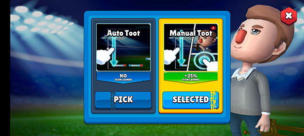 2、操作模式这块,官方给了俩选择。一个是【Auto Toot】,自动吹气模式,说白了就是懒人单手模式,你只要管音高就行,难度直线下降。另一个是【Manual Toot】,手动模式,这个就得两只手了,一只手滑音高,另一只手点屏幕吹气。想挑战自己的就选手动的。