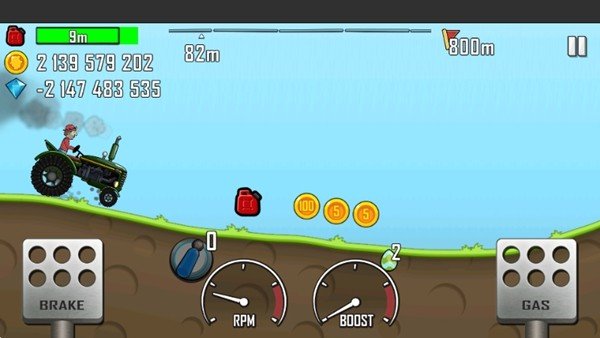 酷二狗玩的这版登山赛车,玩法逻辑简单到发指。屏幕上就油门、刹车、氮气这几个键,闭着眼睛都能按。核心玩法就是捡金币,你只要控制好油门和刹车,别让车翻了,顺便保证油箱不空,基本上就饿不死。这时候肯定有萌新要问了,就这么简单?当然没那么简单。我说的只是入门玩法,想玩得溜,还得整点花活儿。比如开车的时候来个空中转体,滞空时间够长什么的,搞定这些高难度特技都能奖励不少金币。这才是这游戏刷钱的精髓。前面也说了,得有油,油没了就直接GG,所以光耍帅捡金币还不行,还得盯着油量。差不多每跑个500米左右就会有个油桶给你续命(我自己的体感是这样)。游戏里的氮气加速也挺关键,能帮你更容易地完成那些骚操作。