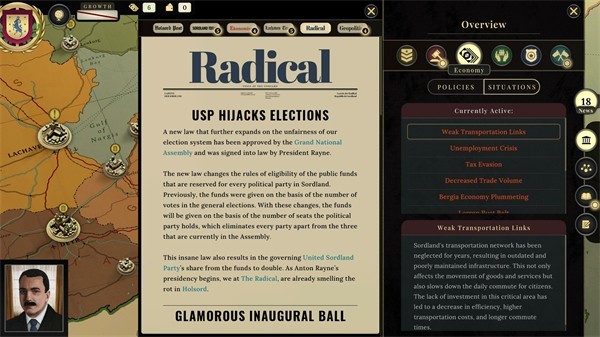 你手下那帮部长,没一个省油的灯。国防部长天天哭穷,说装备再不换就要成古董了;财政部长捂着钱袋子,说地主家也没余粮。你得跟这帮人精斗智斗勇,请他们吃吃饭、喝喝茶,从他们嘴里套话,看清谁是真心办事,谁在背后捅刀。讲真,这游戏的UI稍微有点复古,但人物互动这块做得是真到位。