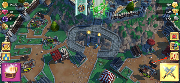 6、这游戏不光是带兵冲冲冲,自己家的防御也得搞好。把视角拉到你城堡外面那片空地,就能看到能放哪些防御工事,比如炮塔之类的。