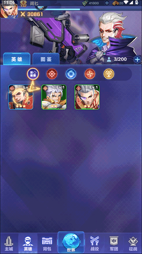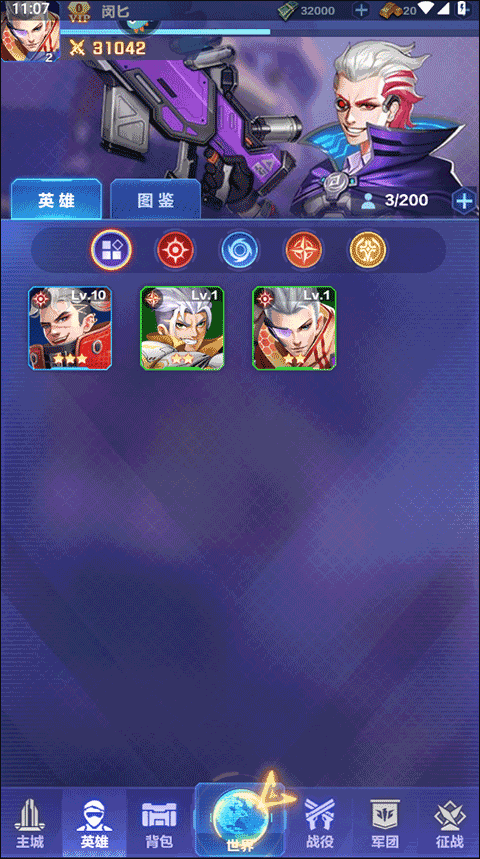 2、第一步,在主界面找到那个“英雄”按钮,点它。
