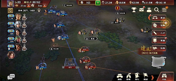 这游戏用的是MMO即时战斗,玩起来有点乱世里兵荒马乱的感觉。你可以随时给出去打仗的部队下新命令,看到情况不对就赶紧换目标,是硬刚还是绕后全看你自己的判断。怎么把手里的武将用好,让他们互相配合,就是赢下战斗的关键。