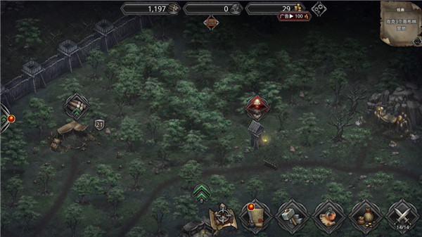 1、在各种不同的挑战地图里,你都得拼命收集木头,这样才能把基地建得牢靠点,不然敌人一来就扛不住。