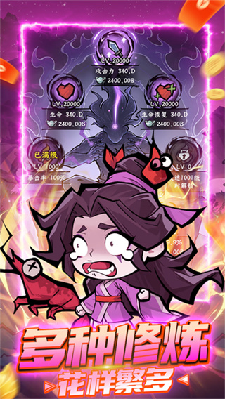 1、武侠风格的放置挂机游戏,玩起来比较轻松;