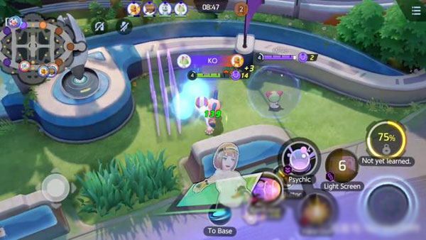 这个跟很多MOBA游戏差不多,5V5对战,一场10分钟,时间结束时哪边得分高哪边赢。你可以通过打败野生宝可梦或者对方玩家来获得分数,然后把分数带到对方的得分点去提交,就能变成团队得分。交分和打败宝可梦都能拿到经验值,经验多了就能升级进化,还能学到新技能(技能是比赛前就配好的)。