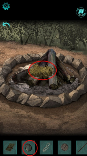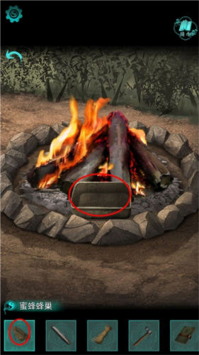 3、把干草扔进火堆里,然后用刚才那个镜片对着太阳点火,老玩家应该都知道这操作;