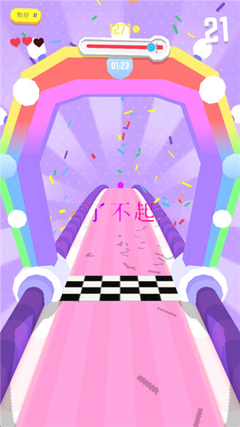 3、屏幕顶上那根条,就是你这关的进度,让你心里有个数,看看离终点还有多远。