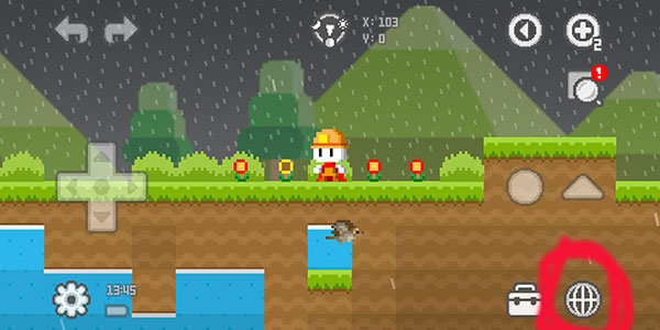 1、玩家A先进游戏,找到并点击右下角那个【地球图标】。看下面这张截图。