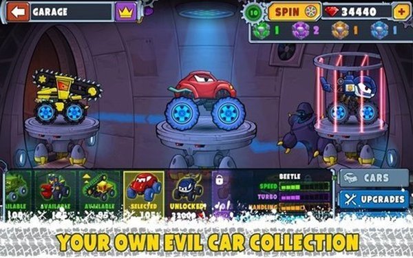 说到车,这游戏的收集系统还挺有意思。什么甲壳虫(Beetlee)、火车头(Locomachina)、鳄鱼车(Gator)这些玩意儿,只要你够肝,都能搞到手。剧情大概就是帮主角从一个叫Carzilla的大反派手里跑路,反正就是个干架的理由,懂的都懂。