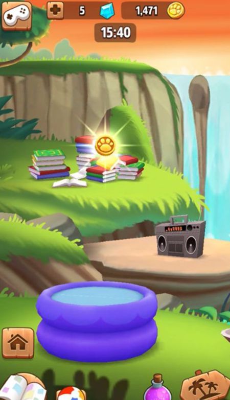 在喂汉克吃饭、带它上厕所、哄它睡觉这些日常操作里,它会慢慢长大升级。升级不仅能解锁新场景,还会给你金币奖励。解锁的地方越多,你赚金币的速度也就越快。