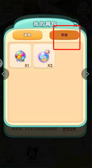 3、在背包界面点击荣誉