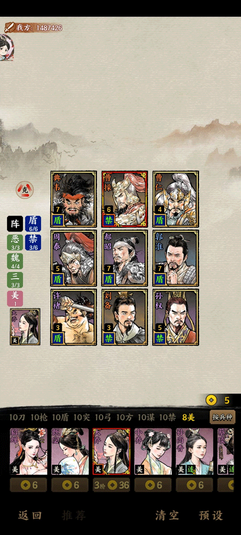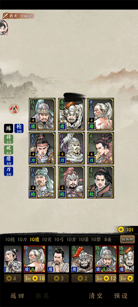 战斗模式是从他们上一个叫《字走三国》的游戏继承过来的,九宫格对打。这里面门道就多了,兵种克制、武将羁绊、你把人放哪排、脚下踩的是什么地形、甚至还会冒出点随机事件,这些玩意儿全都能影响战局。每一场打下来感觉都不一样,策略组合空间很大,不是那种一套阵容打到死的无脑游戏。