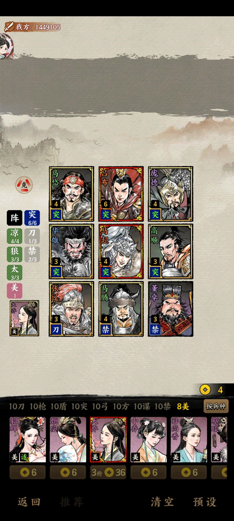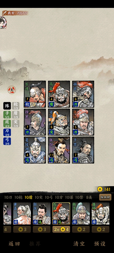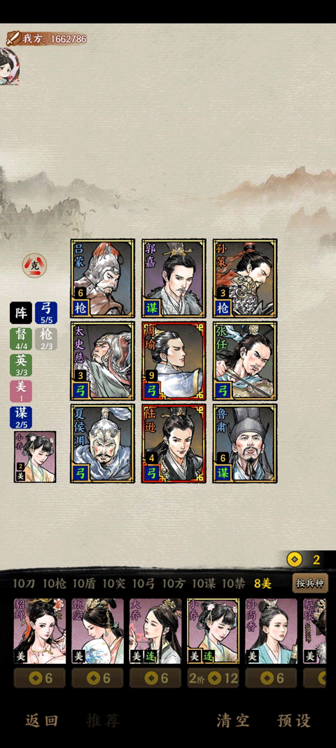 注意,每个品质的武将有最低数量限制。游戏初期系统会根据您招募到的武将自动填充卡组列表。