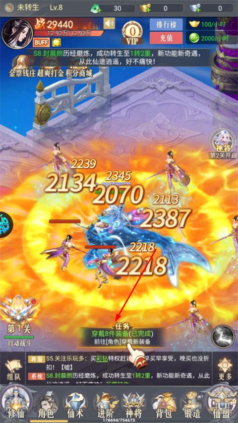 这游戏叫暴走战姬,国风仙侠底子,主打的就是一个福利轰炸。每天上线直接往你脸上砸6480的代金券,还有七日登录、积分换东西、金票钱庄这种活动,生怕你资源不够用。玩法就是最经典那套,过关给材料升战力,然后副本、转生、仙盟、PK、武魂觉醒这些功能就一个个蹦出来了。后期内容也塞满了,什么跨服抢妖王爆红装,还有仙盟争霸抢天帝位子,听着挺唬人,打起来确实也热闹。