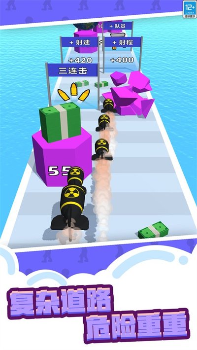 「巨枪冲冲冲2免广告版」是一款采用上帝视角的休闲跑酷射击手游,玩家在自动奔跑的赛道上持续冲刺,通过实时拾取武器、金币与加速道具来强化火力。游戏核心在于不断升级武器的射程、威力和射速,配合流畅的跑酷位移,在极速前进中体验高效收割敌群、极限突围的畅爽射击快感。