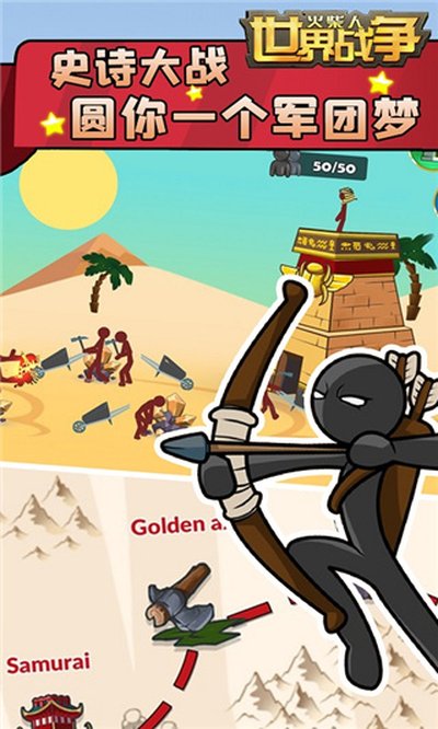 「火柴人世界战争」是一款跳脱出传统动作格斗、主打策略塔防的益智类手游。游戏在经典火柴人形象的基础上,融合了传统的抛物线投掷玩法与创新的地图挑战模式,每一关卡都提供全新的策略环境。凭借其简约的操作逻辑、丰富的武器系统以及极具代入感的特色音效,为玩家在经典的火柴人宇宙中,开创了一场既烧脑又充满竞技趣味的指尖战争体验。