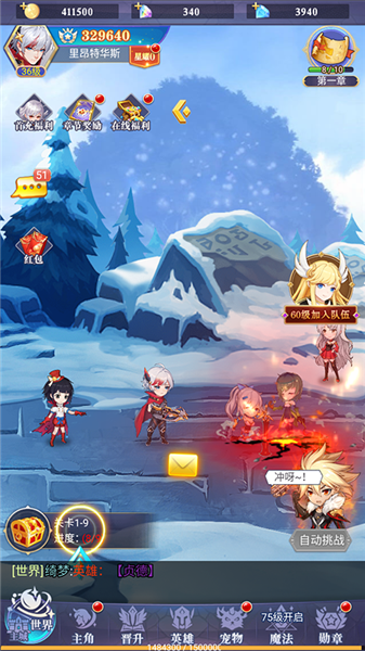 2、自动战斗与挂机系统,轻松推进关卡并获取资源。