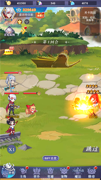 2、游戏采用放置回合制战斗模式,不想观看战斗过程可使用跳过功能提升效率。