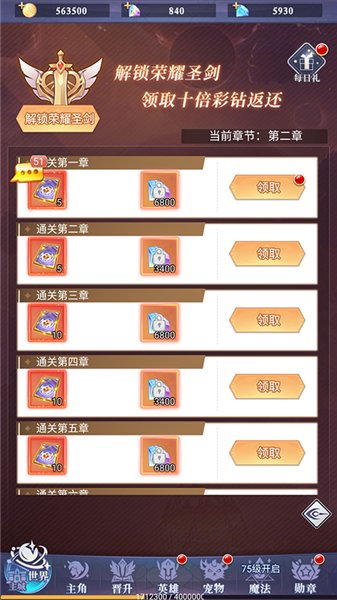 4、通关关卡可领取丰富奖励,无需额外条件即可获得资源加速成长。