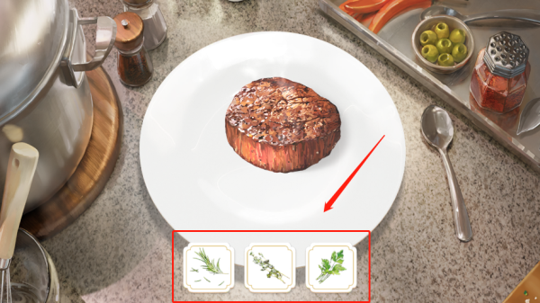 6、根据提示玩一把合成消除,就能把牛排烤好。