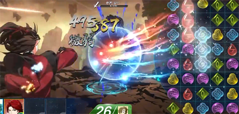 2、战斗这块,说白了就是三消。老玩家应该都门儿清,连上三个一样的珠子就能揍对面的怪。操作简单,上手没难度。就跟截图里这样。