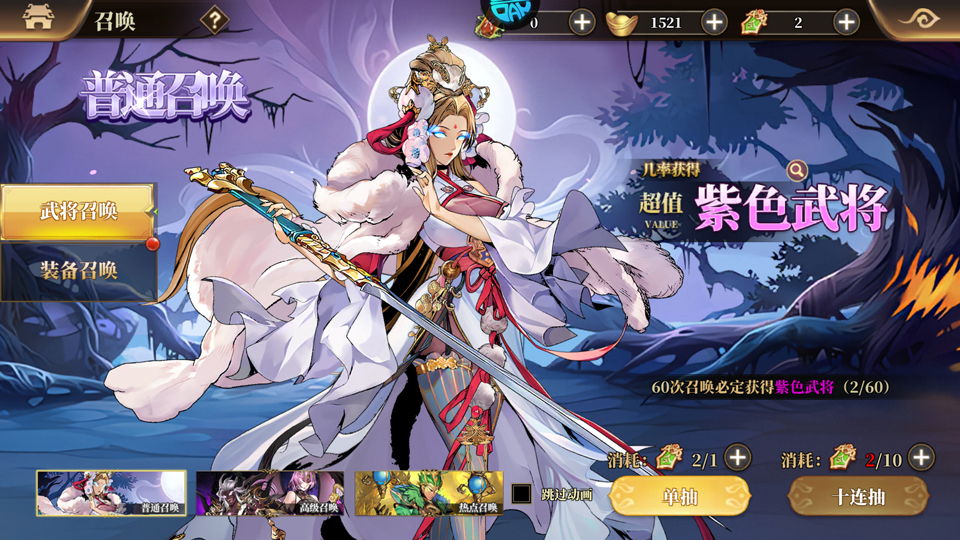 1、用召唤令去抽将,这是核心。每天系统会给你几次免费的初级抽奖机会,让你垫垫刀。