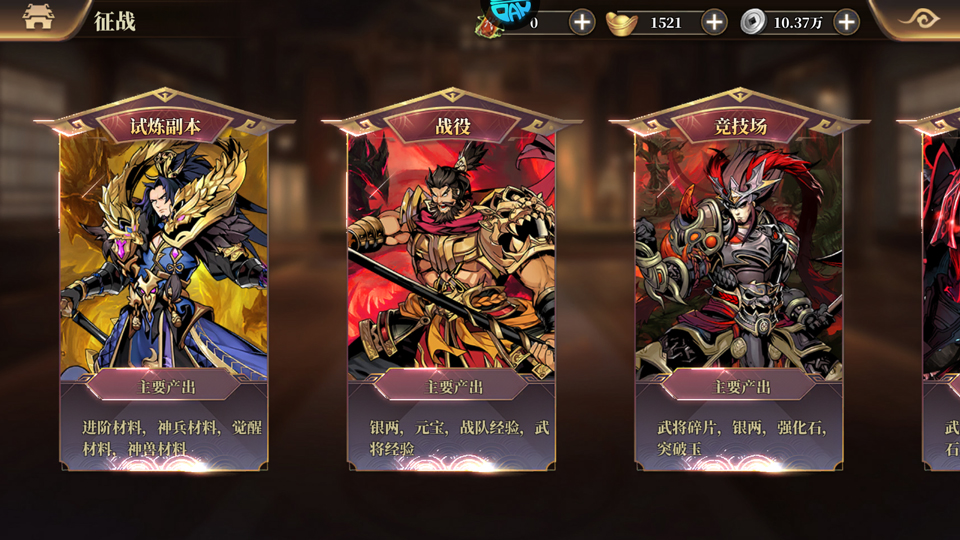 3、游戏里你得不停抽新武将,然后砸资源给他们升级,解锁新技能。