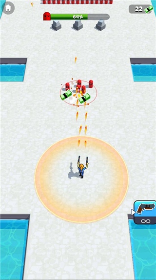 2.除了让你突个爽,游戏里还塞了一套技能系统。想解锁新技能,就得去推图做任务,什么闪现躲弹幕、瞬移到敌人背后偷袭、或者攒个强力一击秒杀精英怪,这些都能搞到。这些技能不光是让你打得更轻松,也给战斗加了不少变数和乐趣。讲真,UI稍微有点复古,但功能确实没毛病。游戏的核心是关卡制,一关比一关难,后面的关卡敌人数量和强度都会飙升。不过别慌,你干掉敌人能攒怒气值,等怒气槽满了,直接松开移动摇杆,就能放一个毁天灭地的大招,瞬间清空屏幕,那叫一个解压。喜欢这种休闲射击的兄弟,可以下来玩玩看。