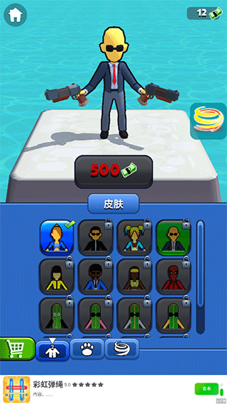 9、当然,外观党最爱的皮肤系统也有,可以给你操控的火柴人换上各种酷炫的行头。以上就是这游戏的基本玩法了,很简单吧。