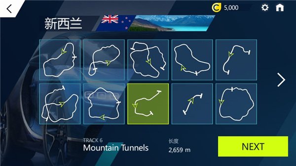 2、进入模式后选择比赛地区与赛道,确认后点击“Next”进入下一步。