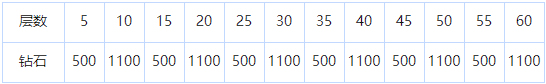 5、无限之塔, 总共60层, 每5层就有钻石奖励, 全爬完有9600钻。