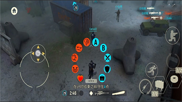 1、进入游戏后,使用左侧摇杆控制角色移动,在地图中自由走动;