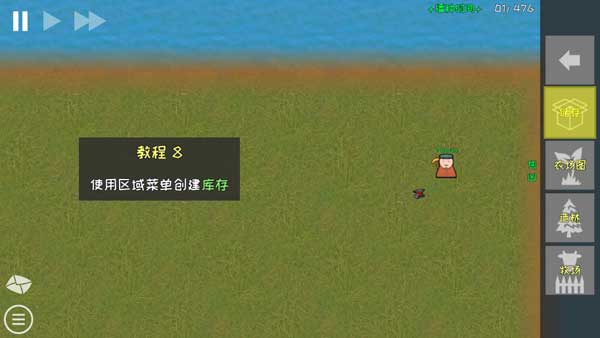 2、点左上角的按钮可以调整游戏速度,能让你的小人干活快点。