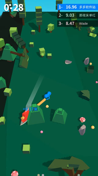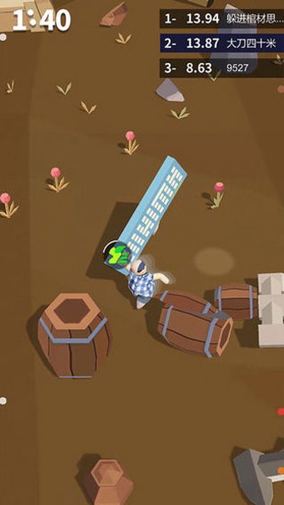 讲真,这游戏的玩法逻辑突出一个简单粗暴。开局给你一把小刀,后面可能刷出斧子、棒槌啥的,看运气。你就在那个不断缩小的圈子里瞎转悠,见啥砍啥。砍树、砍道具、砍人都能加长你的武器,当然了,砍人加得最多。撑过两分钟,没死的人里谁的家伙最长,谁就是老大。
