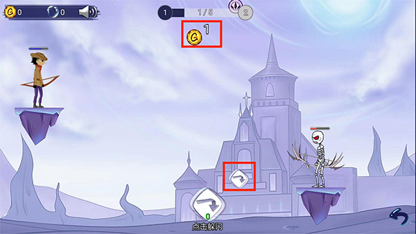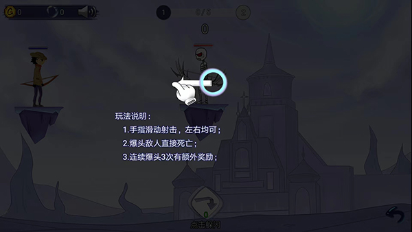 2、根据提示通过左右滑动屏幕拉弓射击,上下滑动进行瞄准,松开即可攻击,爆头可直接击败敌人。