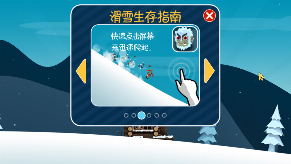 这里说的加速,指的是屏幕中上方那个速度条,最高能到x8,也就是八倍速。当然了,这不代表游戏速度快了八倍,而是说你滑雪的时速上去了,每秒能跑更远的路。加速的方法挺多的,除了骑动物能提速,你只要完整地做个后空翻,速度就能加一级。这通常是在很陡的坡上,腾空时间比较长的时候才能做到,落地那一瞬间会有黄色火花喷出来,给你加速。
