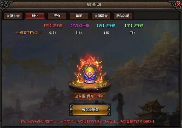 6、甲级品质的坐骑有自己专属的天赋属性,融合的时候,有一定几率能继承材料坐骑的天赋。